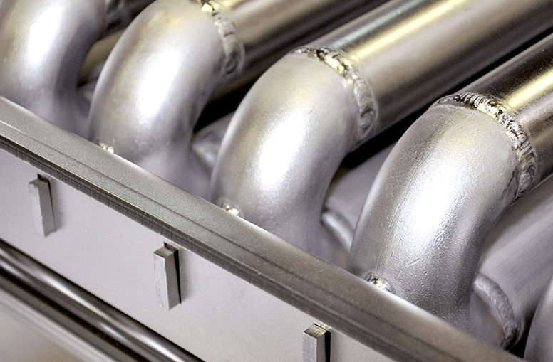 管中换热器的设计减少了热交换器中的热流体油的体积,并均匀地加热整个炸锅的油。热流体体积最小,循环迅速,所以烹饪油的温度快速调整,以产品负载的变化。换热器管独立移动,以防止热应力。加热管之间的间距大,便于清洗,消除了罚款可能隐藏的区域。
